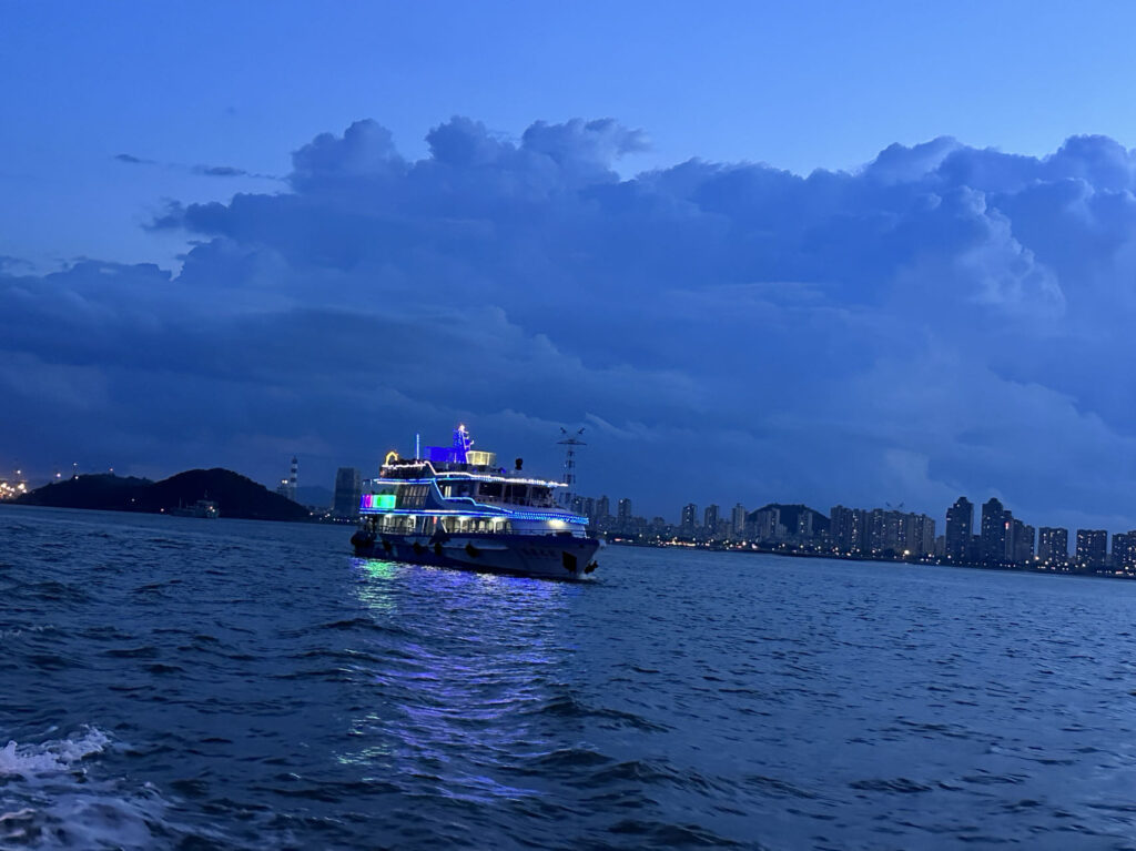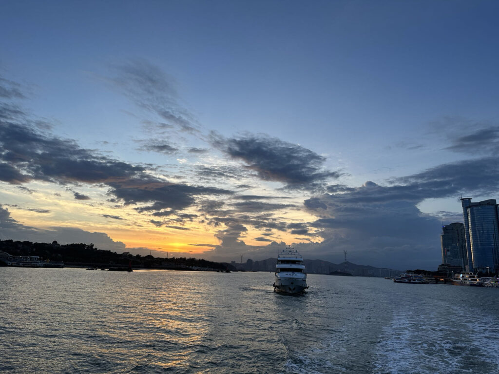 酒店住23楼的海景房,感觉好奇怪的是,窗户看出去,舷号645的宣城舰(056A型护卫舰)一直停在靠近环岛路的海边,住的那几天一直停那儿,上面也不见人,不知道是在执行啥任务不?
